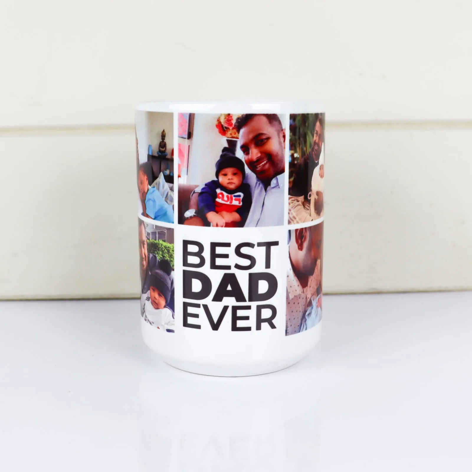 Are you looking for the perfect Father’s day gift? Then try out our Best Dad Ever Coffee Mug! Features a wrap-around design that holds up to five photos of your loved ones.