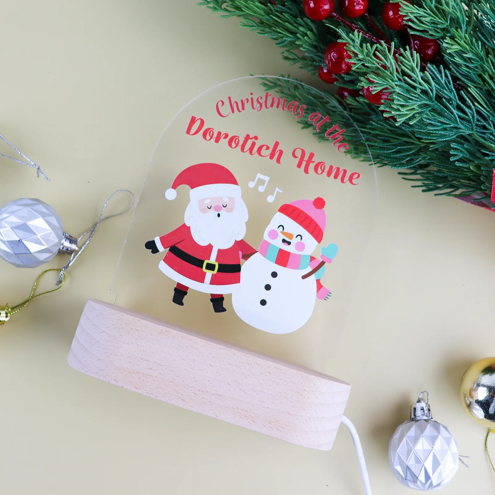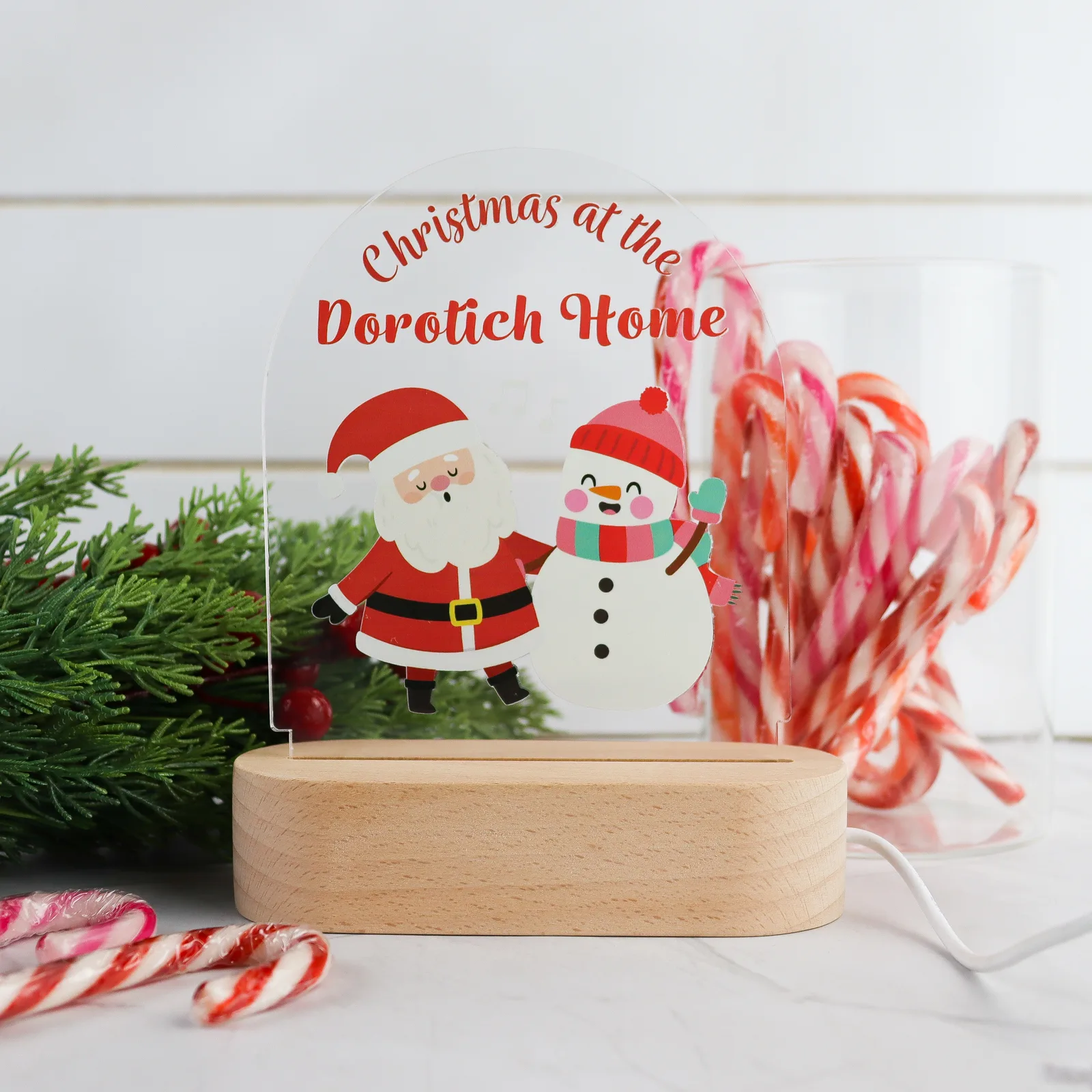 Introducing our exquisite Christmas at the Family Home Night Light, a timeless addition to your holiday decor. This enchanting piece combines the warmth of family traditions with the brilliance of LED technology. Crafted with utmost care and precision, this light showcases a stunning personalised design that will illuminate your home with festive cheer. Each LED light is meticulously customised with your family’s name, creating a truly unique and heartwarming display. The soft glow emitted by the LED bulbs casts a gentle ambience, perfect for creating a cosy atmosphere during the holiday season. With its durable construction and energy-efficient design, this light will continue to bring joy to your family for years to come.