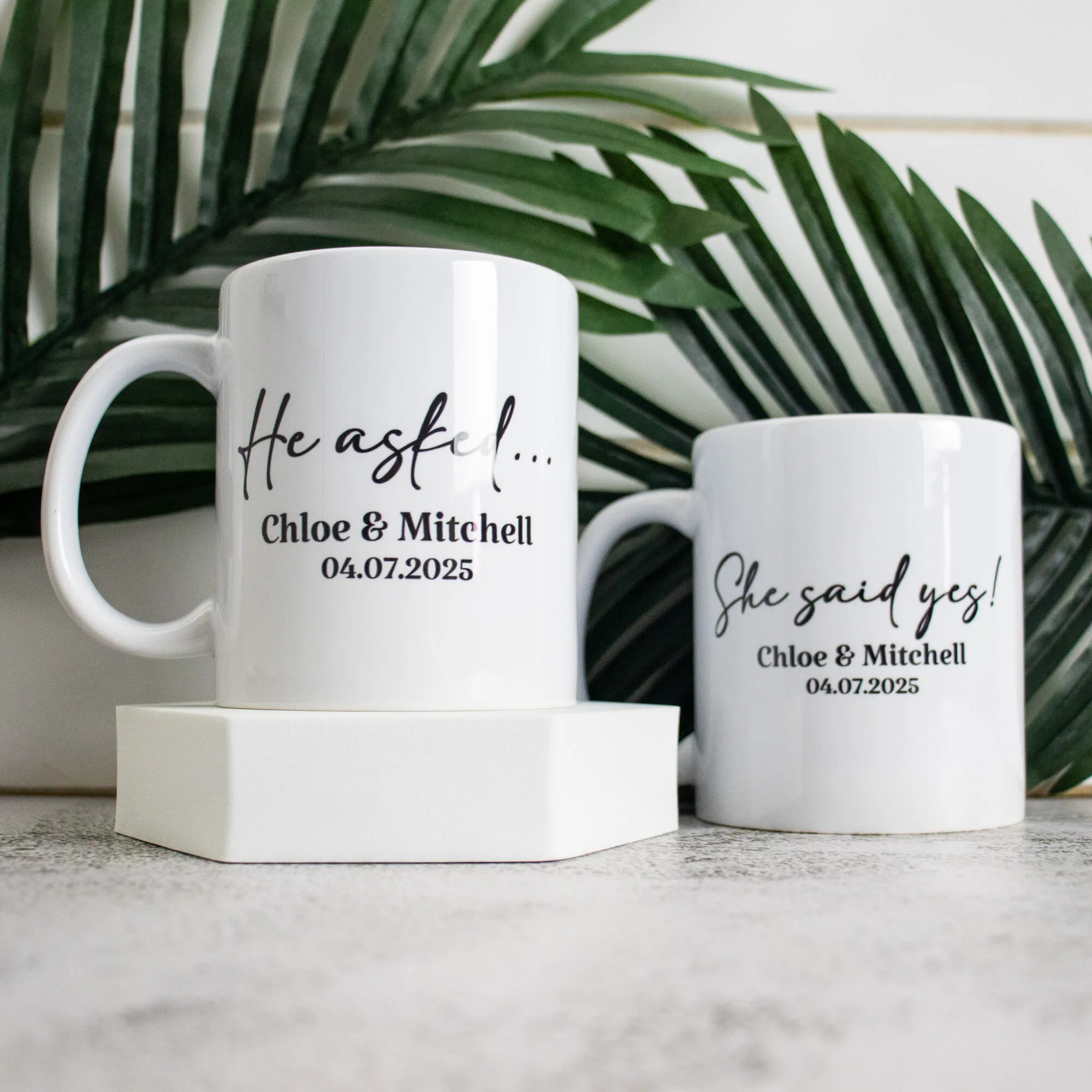 - This listing is for one amazing set of two matching custom mugs, designed to celebrate a beautiful engagement. They ship empty, ready for you to fill with joy!
