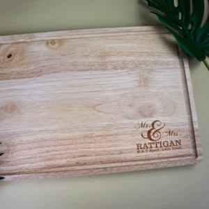 Hunting for a pressie that’ll knock their socks off? Our Couples Personalised Chopping Board is a deadset stunner for any romantic occasion. Whether it’s for a wedding, an engagement party, or a thoughtful anniversary surprise, this board helps you memorialise the joyful occasion while offering plenty of practical use in the kitchen. It’s the kind of gift that gets pride of place on the bench top, not shoved in the back of the cupboard.