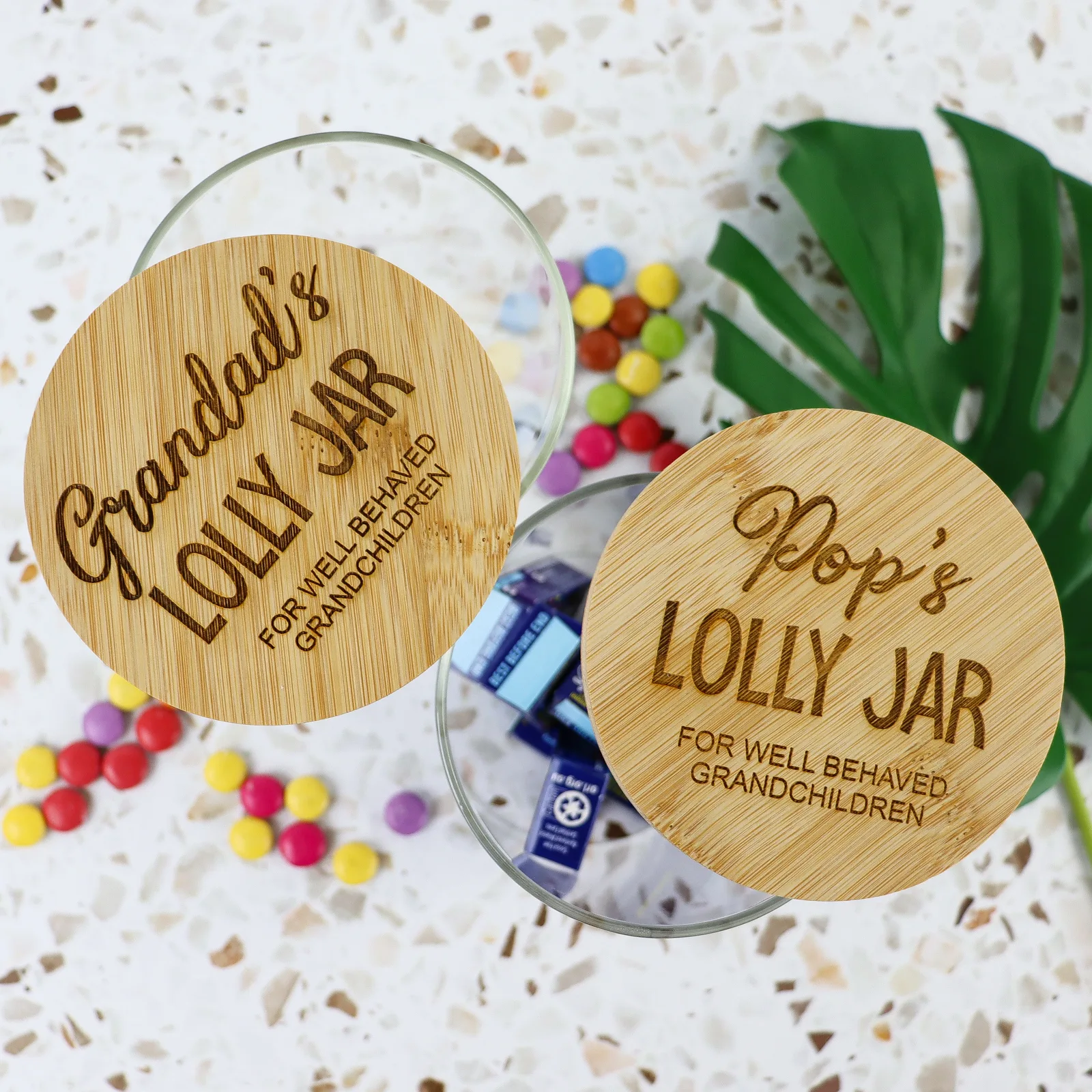 Crafted from high-quality clear glass, this lolly jar is designed to showcase the colourful treats inside while keeping them fresh. Its classic designs fits perfectly in any dad’s office, man cave, or kitchen counter, serving as a constant reminder of your love. A thoughtful and unique gift that stands out from the usual. We laser engrave the bamboo lid for a quality, long-lasting finish. Holding up to 1020mL this Personalised Fathers’ Day Lolly Jar can be filled with lollies, cookies or any of Dad’s favourite goodies! Made from glass and bamboo with a silicone seal to ensure freshness lasts.