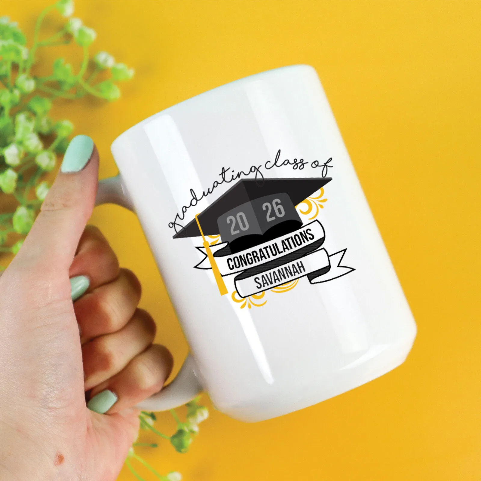 Prepare to celebrate a major milestone with our “Graduating Class Of” Coffee Mug, the perfect commemorative gift for the graduate in your life! This isn’t just any mug; it’s a personalised tribute to years of hard work, dedication, and success. Imagine their delight as they sip their favourite brew from a mug proudly displaying their graduating year, a constant reminder of their incredible achievement.
