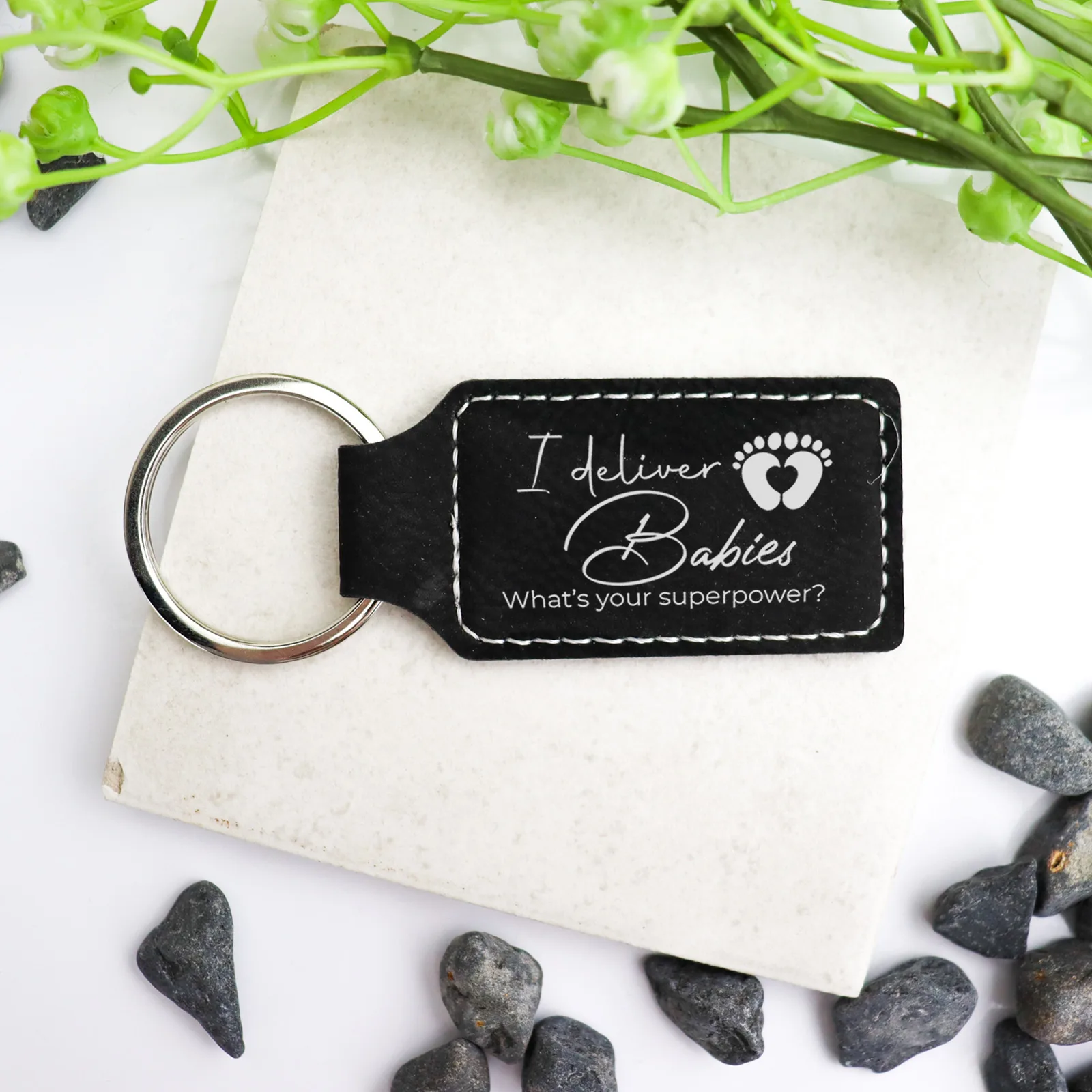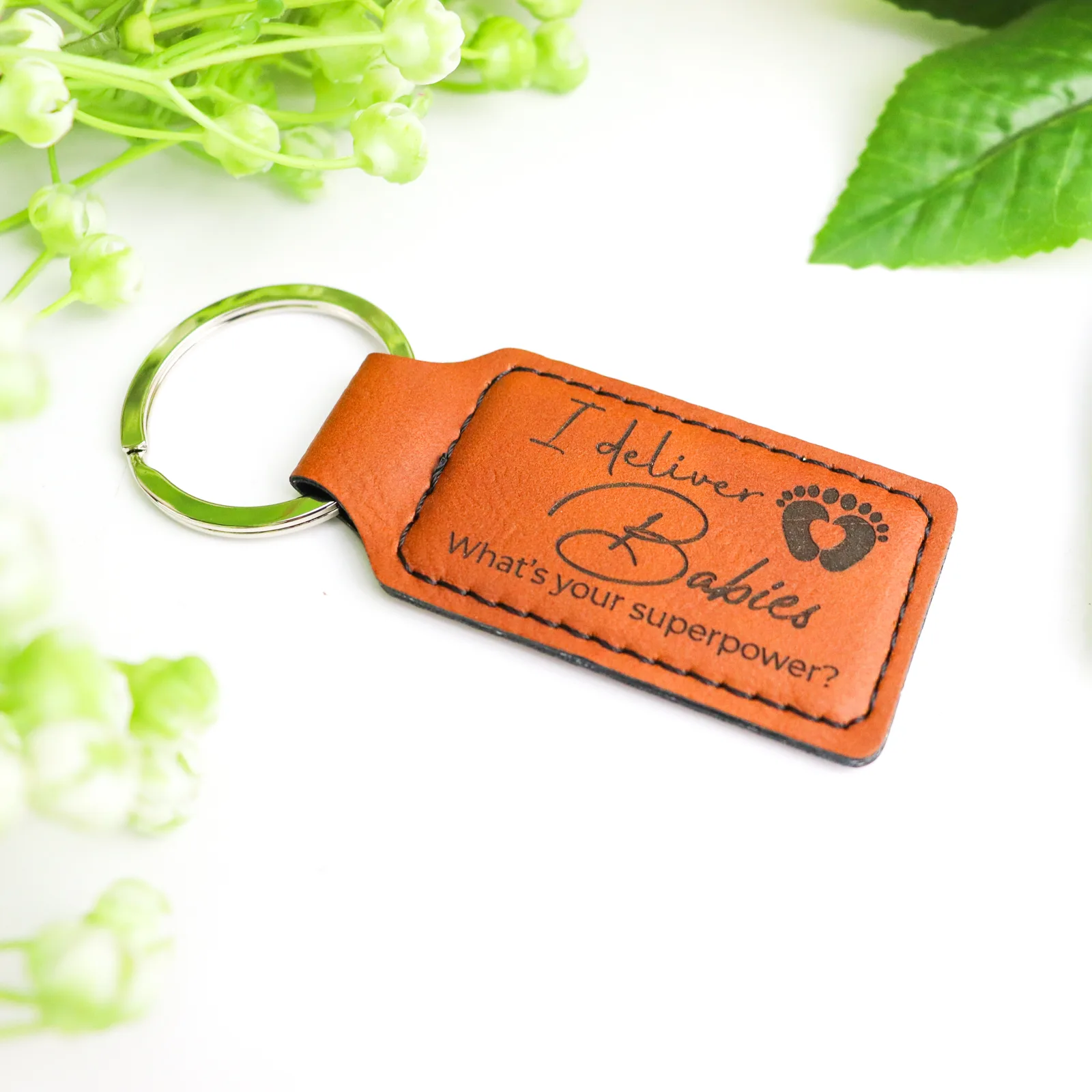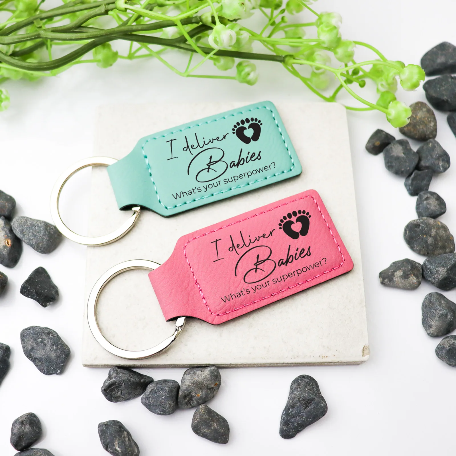 Our Midwife Personalised Vegan Leather Keychain is a thoughtful and stylish token of appreciation for your midwife, featuring a professional engraving. Crafted with high-quality vegan leather, this keychain is both durable and elegant, making it a perfect gift to express gratitude for the exceptional care and support provided by your midwife. It also makes for a great graduation gift for all those student midwives.
