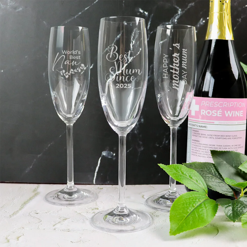 Celebrate your mum this Mother’s Day with one of our Mother’s Day Champagne Flutes. These Champagne Flutes come in a variety of designs perfect for mum, grandma or a special bonus mum in your life. Sure to make the perfect gift for them this Mother’s Day.