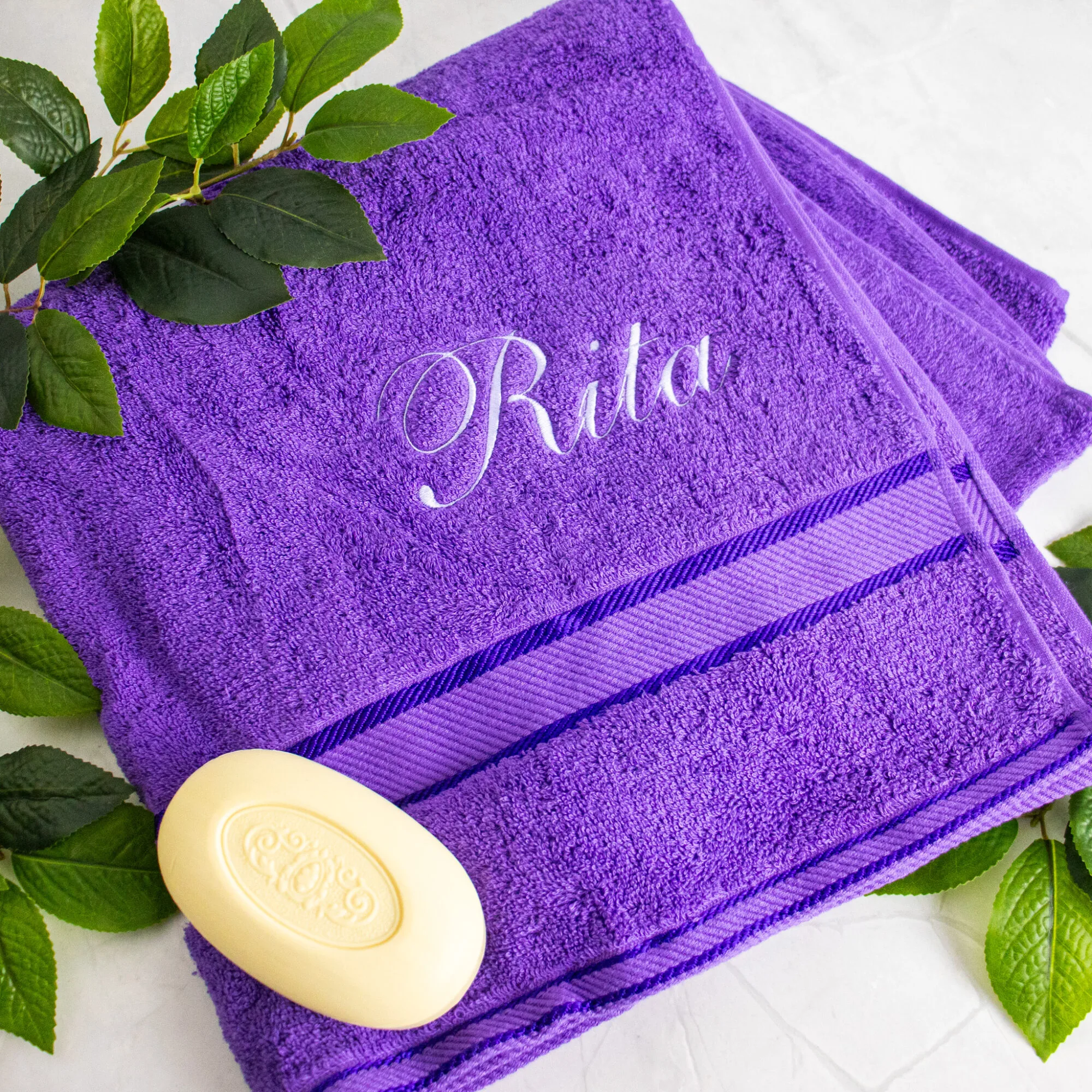 Keep dry with your own Purple Embroidered Bath Towel, at 550gsm and 132cm by 68cm, these towels are great for all ages. Made from 100% combed cotton and Oeko-tex certified, making them 100% free from harmful chemicals and toxic dyes.