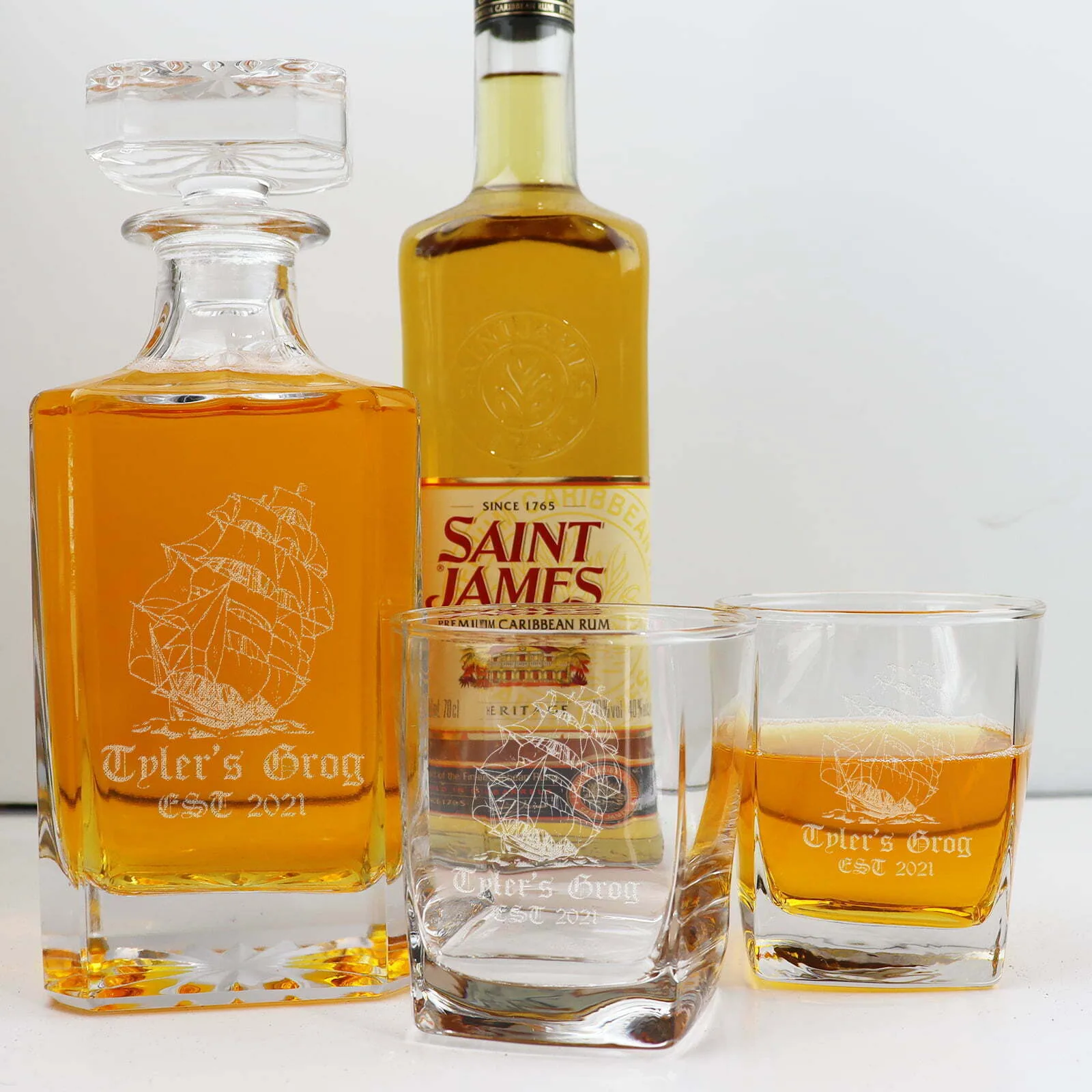 - The Glasses: The two matching liquor glasses will also be laser engraved, creating a cohesive and stunning look.