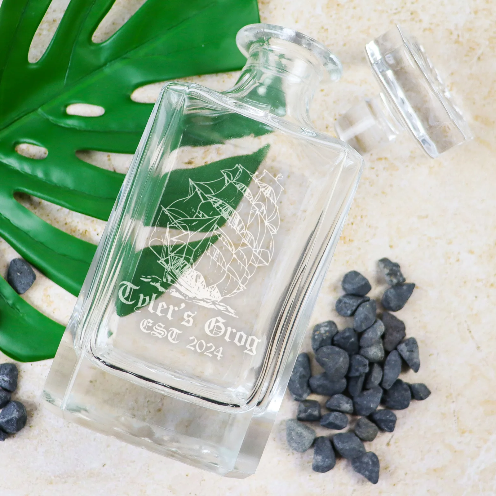 - The Decanter: This is where their favourite tipple will shine! We’ll expertly laser engrave directly onto the glass decanter itself. You can add a name or a special date, that will forever grace their bar cart.