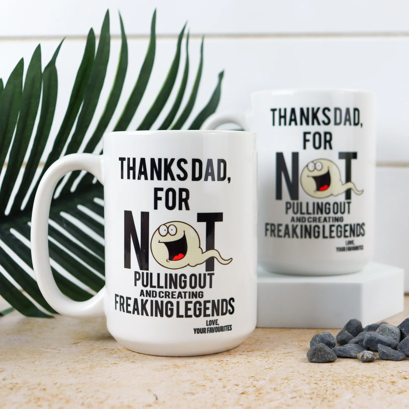 Your “Thanks Dad you Legend” coffee mug is expertly sublimated with the design, ensuring vibrant, lasting graphics. Just a little heads-up: as with all printed products, the colours on your device might not truly reflect the print colours possible. We always aim to ensure the visual design matches the print as closely as possible to bring you the best quality.