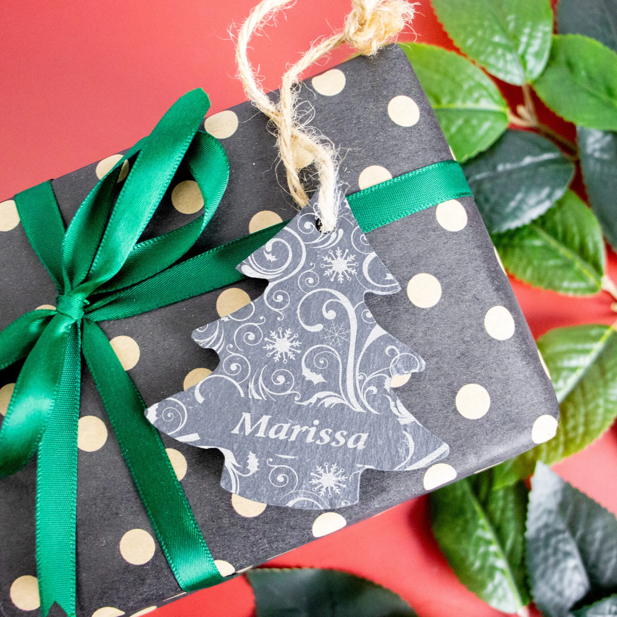 Make it completely yours by adding a name. We’ll print your text directly onto the slate, creating a one-of-a-kind decoration that lasts.